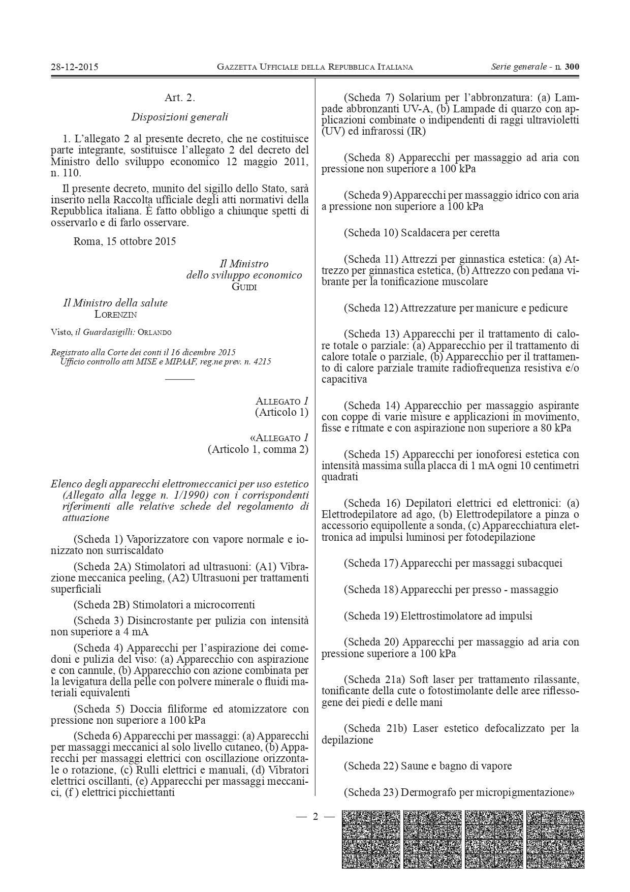 DECRETO MINISTERIALE 206 DEL 2015 allegato alla legge 1 del 4 GENNAIO 1990